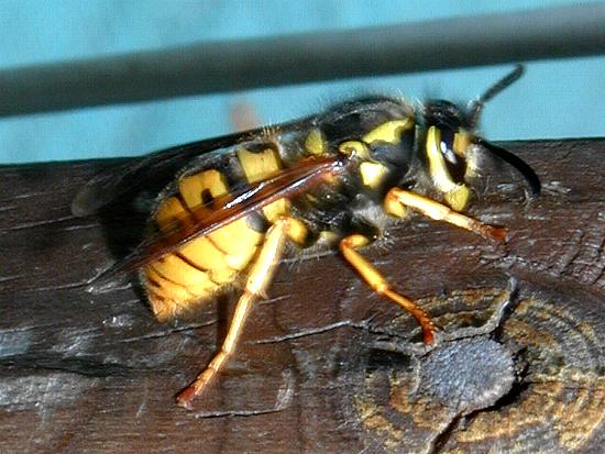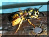 Nach dem Auswerten der Aufnahmen kann man am Kopfschild der ersten Aufnahme erkennen, dass es sich um die Königin der deutschen Wespe handelt.
