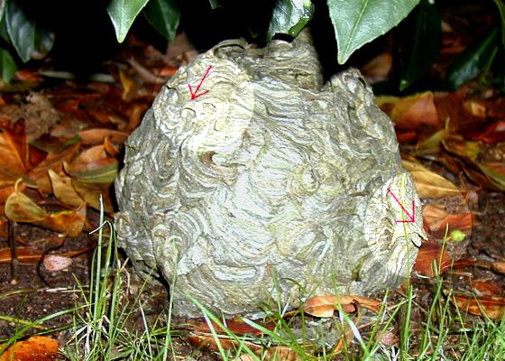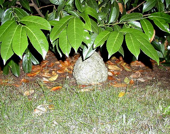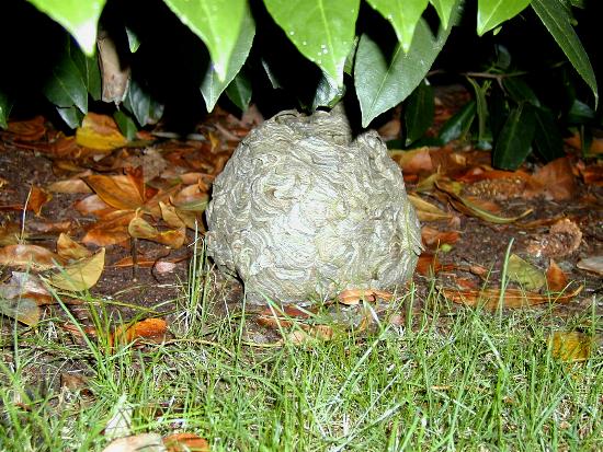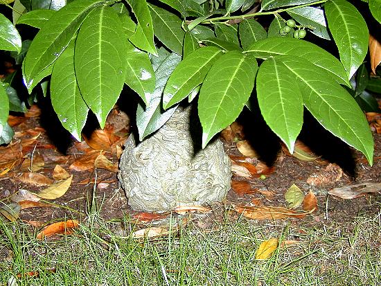 "Unter einem Gebüsch in unserem Garten befindet sich ein Wespennest". So