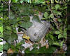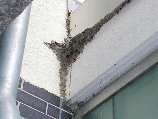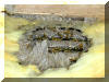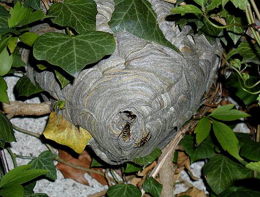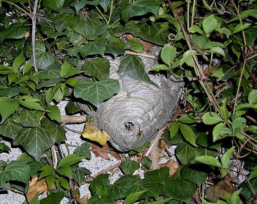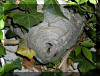 Nest der Mittleren Wespe. Hier in einem Efeu an der Garagenwand eines