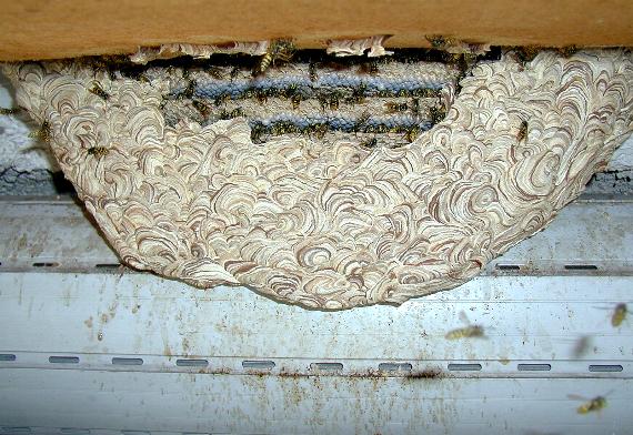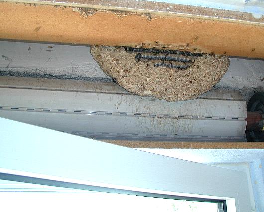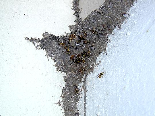 Hornisse" aus dem Einflug und saß auf der Nesthülle.