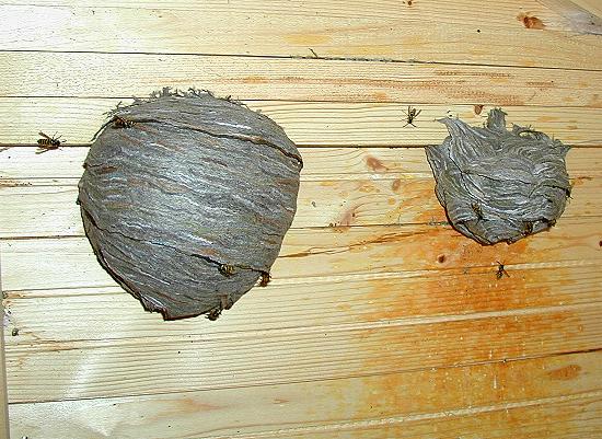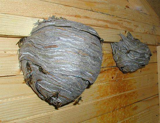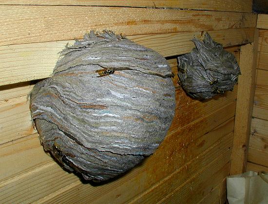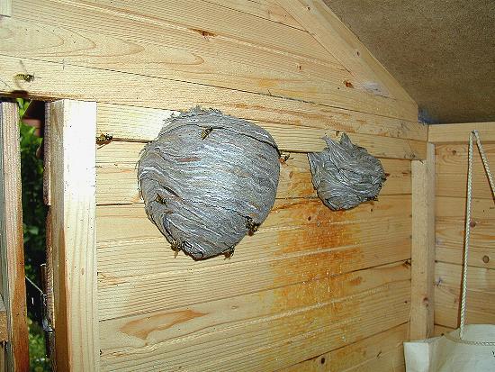 Gleich zwei Wespennester entdeckte Frau B. in ihrem Geräteschuppen, als sie Werkzeug zur Gartenarbeit entnehmen wollte.