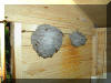 Vor Ort war bereits starker Flugverkehr an der Einganstür des Schuppens zu erkennen. Beim öffnen der Tür schwirrten zahlreiche Wespen rund ums Nest. An der Wand der Hütte befanden sich zwei Nester der sächsischen Wespe. Das eine war normal entwickelt, während ich das zweite Nest als "unterentwickelt" bezeichnen möchte.