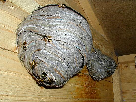 Ab jetzt gehört der komplette Geräteschuppen den zwei Wespennestern. Frau B. wird bis zum September die Tür nicht mehr öffnen und möchte die Tiere ganz in Ruhe lassen. |