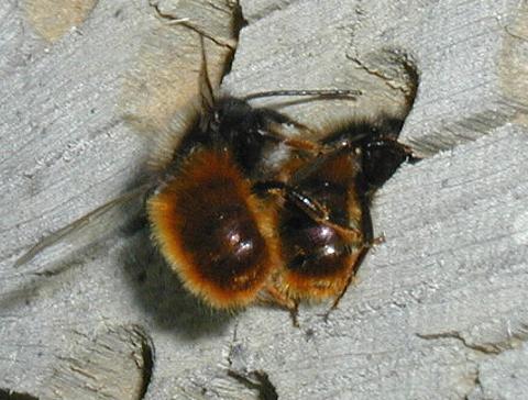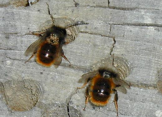 Mauerbienendrohnen an der Wildbienennisthilfe