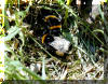 Mit einem Flatterband wurde ein kleiner Bereich um den Einflug des Hummelnestes abgesperrt. Aufklärungsarbeit in den Kindergartengruppen soll weiterhin dazu beitragen, dass die nützlichen Insekten von den Kindern respektiert werden und in der Saison am natürlichen Standort bleiben dürfen. |