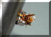 Nestgründung einer Königin der mittleren Wespe an einem Terrassendach |