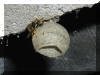 Vorsichtig öffne ich die kleine Schuppentür und entdecke sofort in der linken Ecke, direkt am Eingang, den kleinen "Tischtennisball" mit dem innen liegenden Wabenbau. Im Schuppen selbst lagere ich meine Umsiedlungskästen und das Zubehör für die Wespen- und Hornissensaison. Na ja, werde wohl das Material aus dem Schuppen räumen müssen um früher oder später Konfrontationen zu vermeiden.