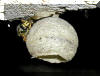 Durch einen Zufall entdeckte ich heute in meinem Schuppen eine vorsichtig anfliegende Wespenkönigin. Sie hatte, soweit ich im Anflug erkennen konnte, eine verspeichelte Kugel in den Mandibeln.