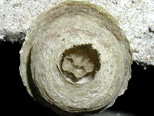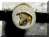 Ein Einblick durch das Einschlupfloch lässt gut entwickelte Larven erkennen, die sich bald verpuppen werden. In etwa 14 Tagen werden dann wohl die ersten Arbeiterinnen den Nestbau vorantreiben. |