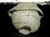 Die äußere Lage der Nesthülle vom 28. April ist vollendet und eine neue Lage ist in Arbeit. Ein kleiner Einflug am unteren Nestrand ist gerade mal für den Körper der Königin ausgelegt.
