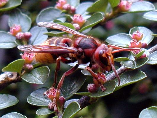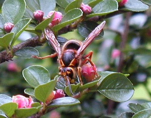 Nektartrinkende Wespenköniginnen an der Fächermispel (Cotoneaster horizontalis)