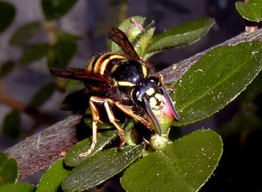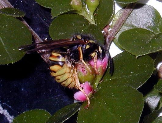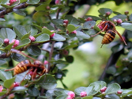 So treffen auf dem Mispelstrauch die Wespenköniginnen der verschiedensten Arten (mittlere-, gemeine-, deutsche-, norwegische-, sächsische Wespe und Hornisse), um hier einen süßen "Nektar-Coktail" zu sich zu nehmen. Die Energietankstelle wird rege genutzt um Kraft für die arbeitsintensive Nest- und Brutpflege zu tanken.