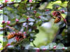 In aller Ruhe besucht hier jeder "Gast" die Blütenkelche. Kommt man sich zu nahe, wird mal laut mit den Flügeln gebrummt und das Revier ist abgesteckt. Jagd untereinander oder auf andere Insekten konnte ich nicht beobachten. Es scheint so, als ob der Nektarstrauch eine jagdfreie, neutrale Zone ist.