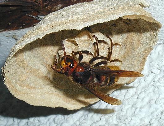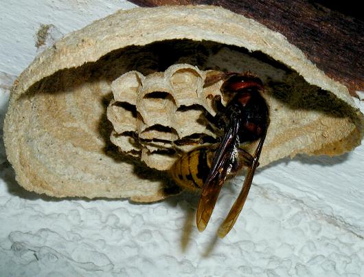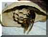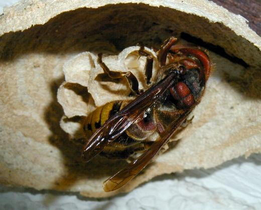 jetzt die Königin um ihre Brut. Den Kopf tief in die Waben getaucht,