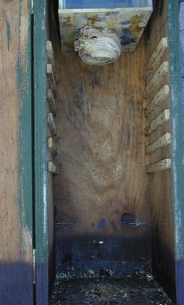 Nest so vor, wie es im Juli umgesiedelt wurde. Um die Wabe allerdings