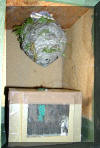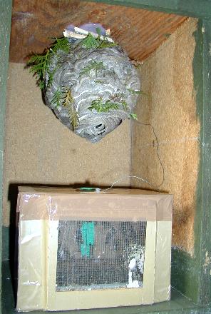 entnommene, komplette Nest in den bereit gestellten Wespen-Nistkasten. Im Inneren
