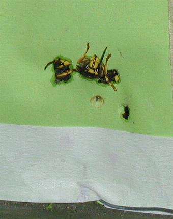 Etwa 45 Minuten nachdem sich die ersten Wespen durch das Papier genagt