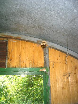 Direkt über den Eingang befindet sich die Filialbildung des Hornissennestes. Somit würde es jedes Mal beim öffnen der Wagentür zu Störungen kommen. |