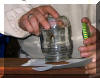 Hans-Jürgen während beim Einsetzen der abgefangenen Hornissenarbeiterinnen in ein Glas. |