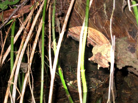 ...einem alten, umgestürzten Baumstamm direkt in Bodennähe. |