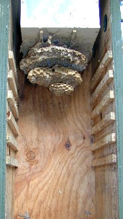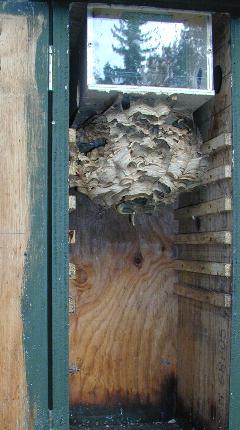 Saisonende - Nest mit Hülle - Nach dem Öffnen des Umsiedlungskastens zeigt sich ein recht klein gebliebenes Nest. |