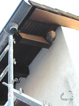 bemerkten die Maler ein Wespennest direkt am Dachvorsprung.