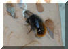 (Bild 3) Rückwärtsgang zum Abstreifen des Pollens der am Hinterleib haftet. Schön zu erkennen ein weißer Pollenfleck auf dem Stirnschild vom verdichten des eingelagerten Pollens.