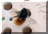 So kann es schon einmal passieren, dass im Eifer des Gefechts ein vorbeifliegendes Männchen umklammert wird, beide zu Boden fallen und sich mit lautem Brummen wieder trennen. |