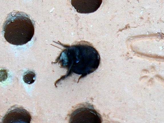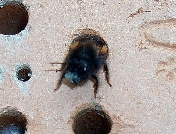 Erste Beobachtungen an der Wildbienenisthilfe