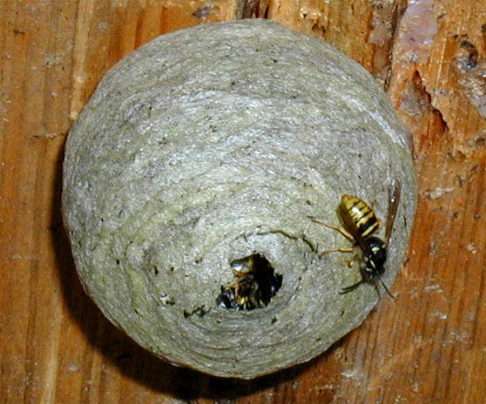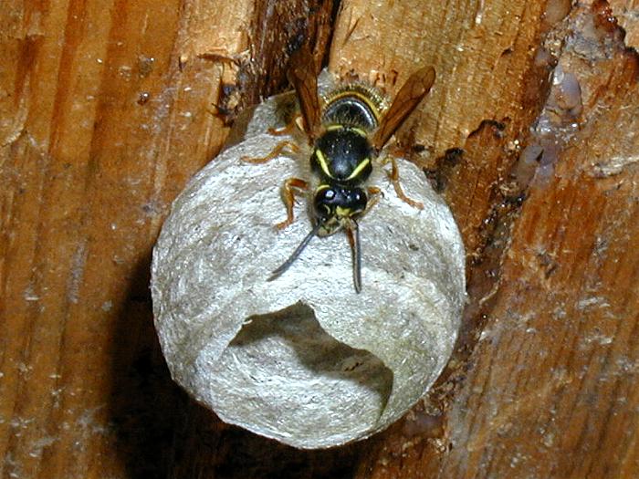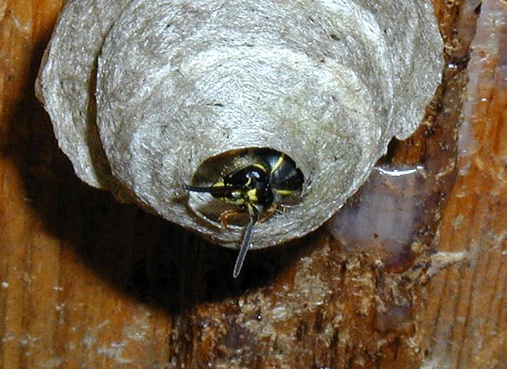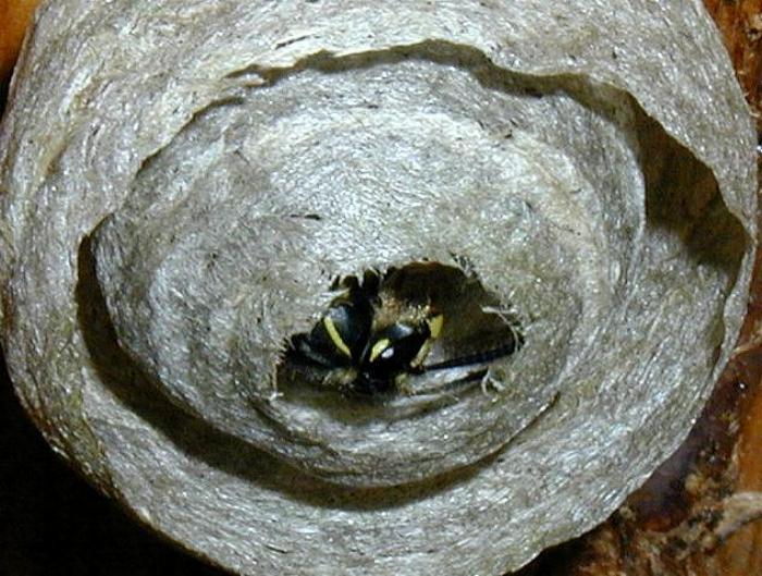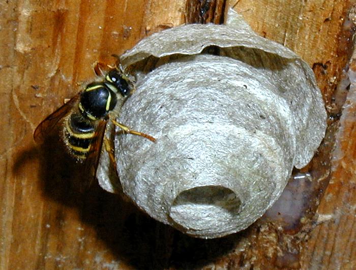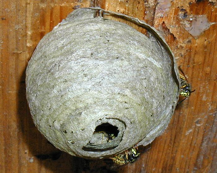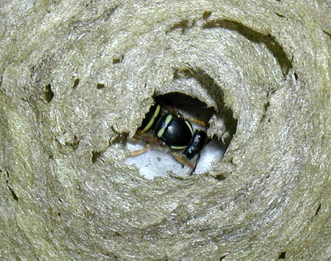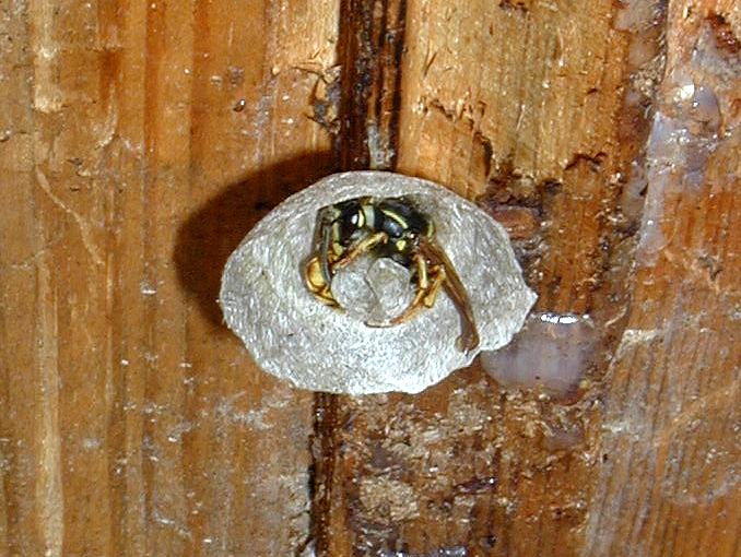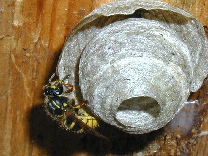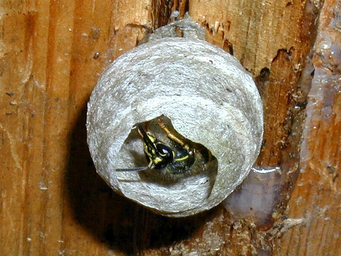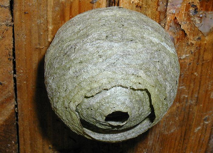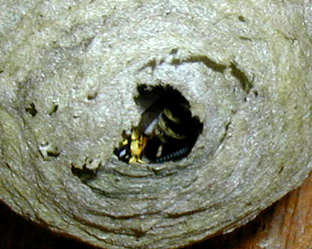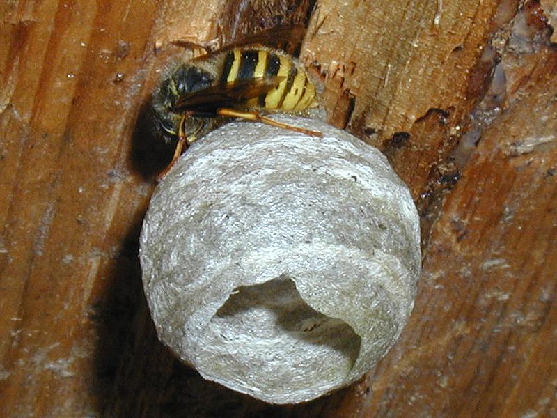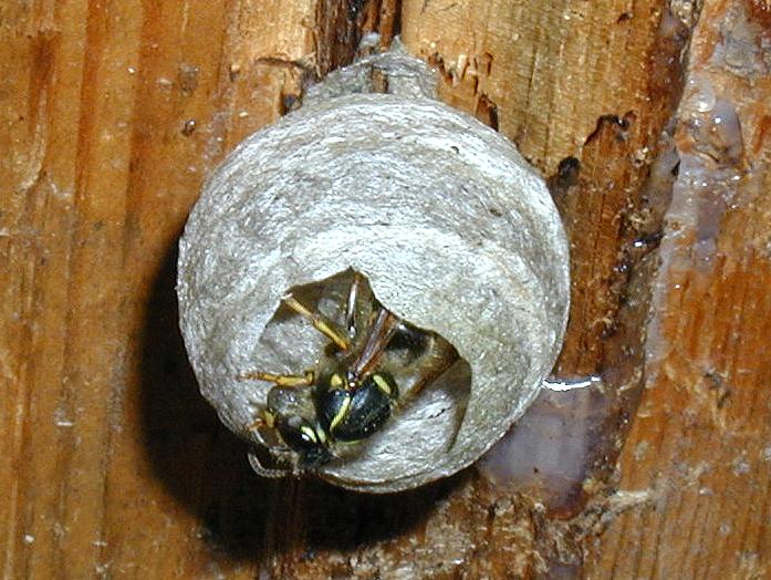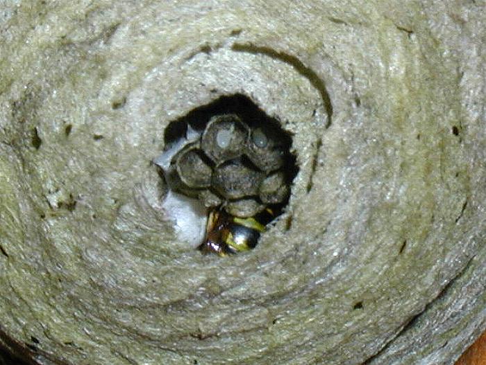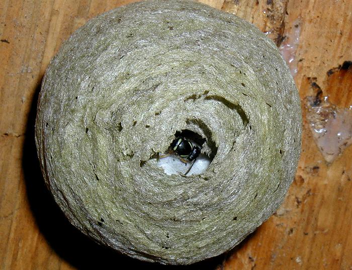 Nesthülle gebaut. Immer wieder knetet die Wespenkönigin das aufgebrachte