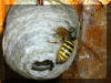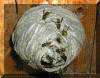 einige Wespenarbeiterinnen verteidigungsbereit auf der Nesthülle. Dennoch