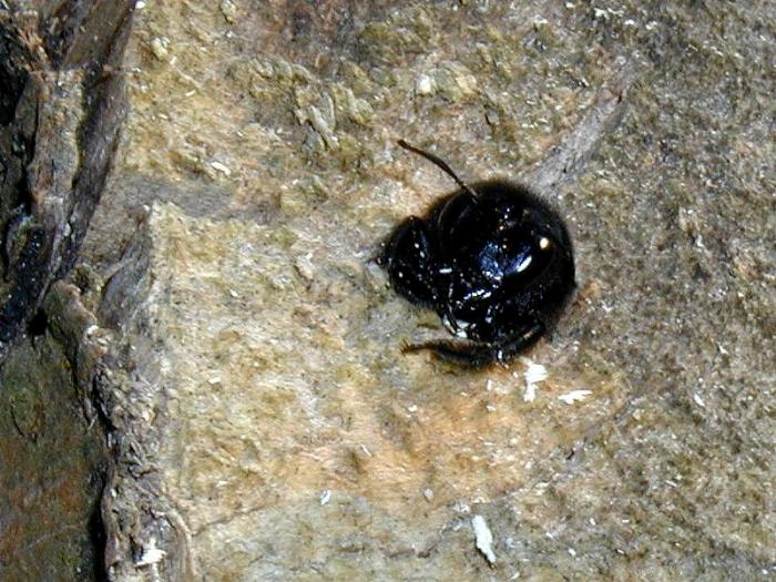 geeigneten Stelle für die Brutröhre und die dritte Holzbiene entfernt