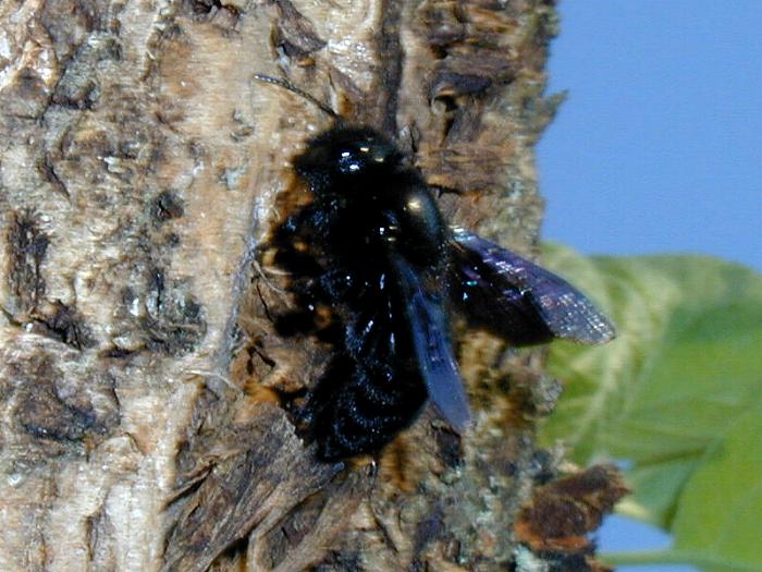 Auf diesem Ast saß nun die blaue Holzbiene und knabberte mit richtig