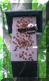 hundert Hornissen auf dem Hornissennistkasten. Man glaubt gerade im