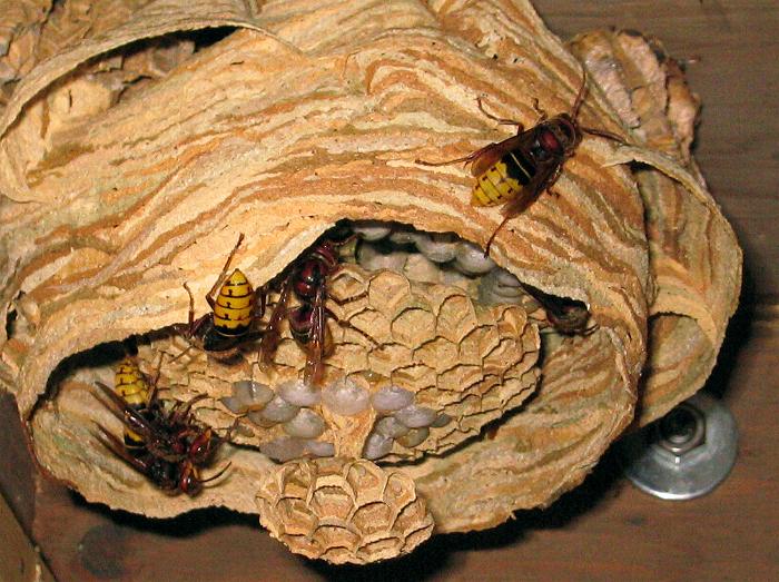 Im Hornissennest von Hans Bugert befinden sich bereits kleine Larven in