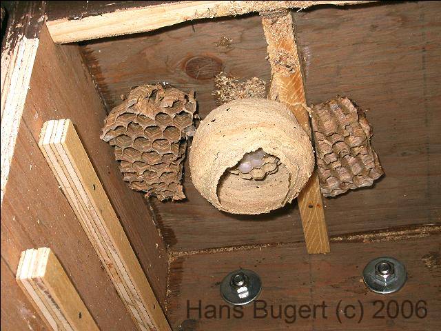 Nistkastens. Hier wird gerne das neue Nest mit dem Wabenstiel