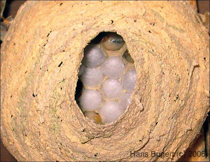 Die Nesthülle wurde erweitert und die ersten vier Wabenzellen sind