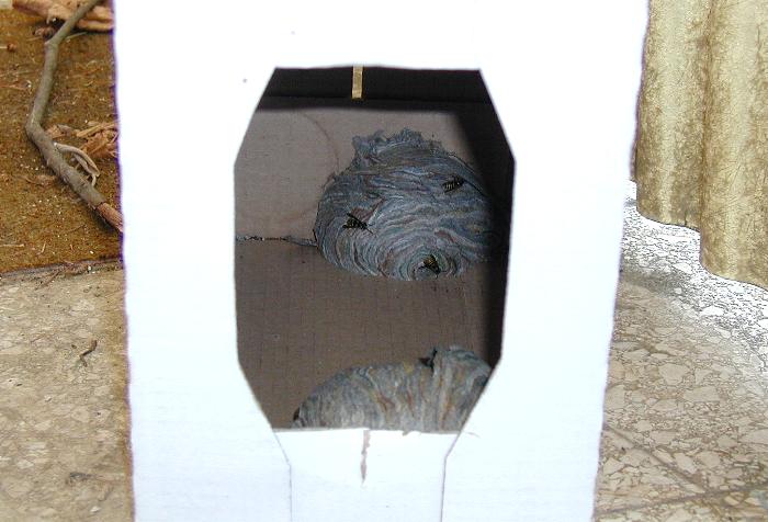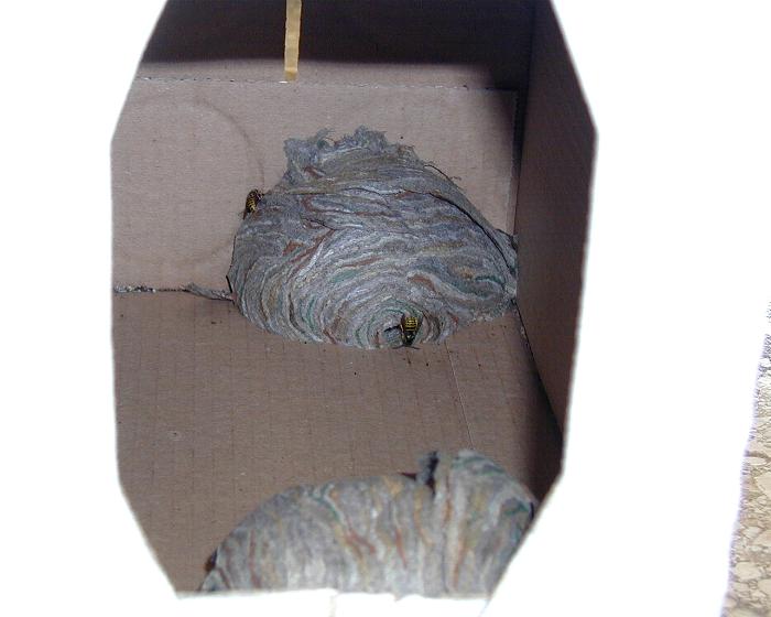 einem alten Pappkarton ein Nest der sächsischen Wespe angesiedelt.