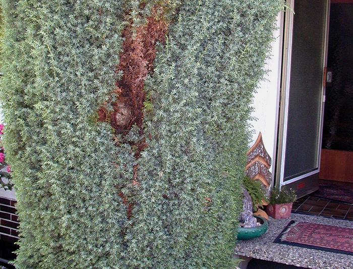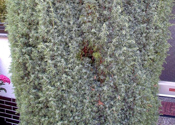 eine schön gewachsene Zuckerhutfichte. Durch ein kleines Loch flogen