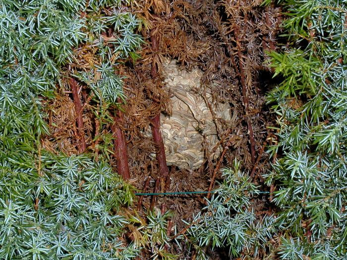 Standort des Wespennestes -"Im Gebüsch vor der Haustür"- hörte, dachte