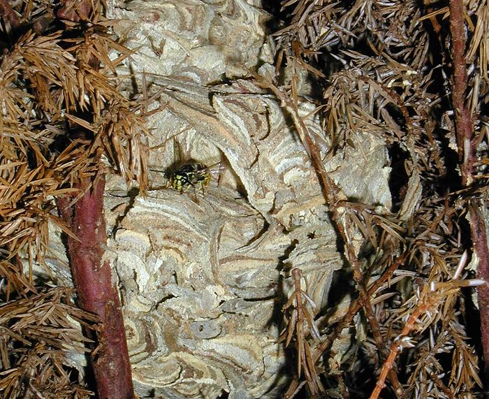 Außenhülle des Wespennestes mit Muschelstruktur deutet eindeutig auf die