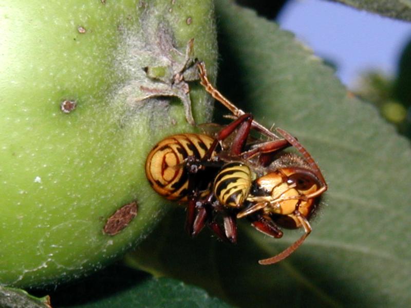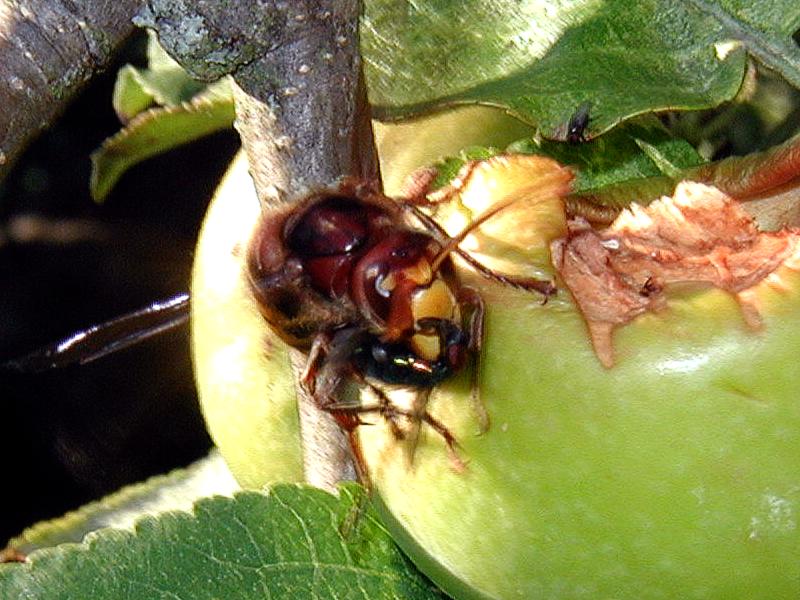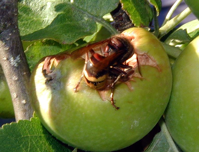 diesen Beobachten. Allein schon der Anflug einer Hornisse zum Apfel war