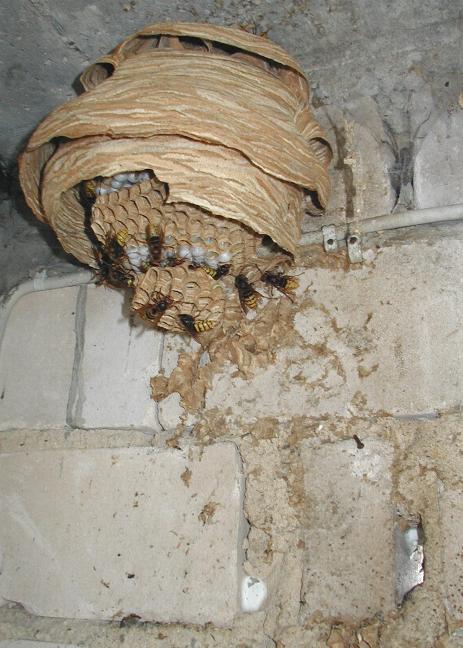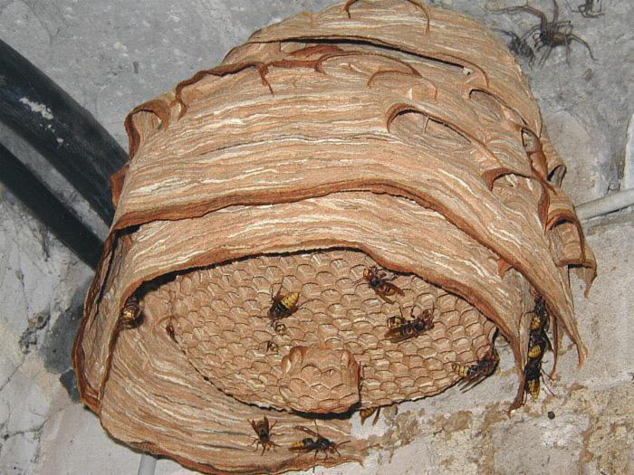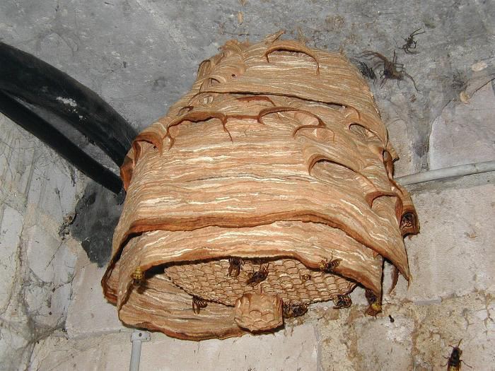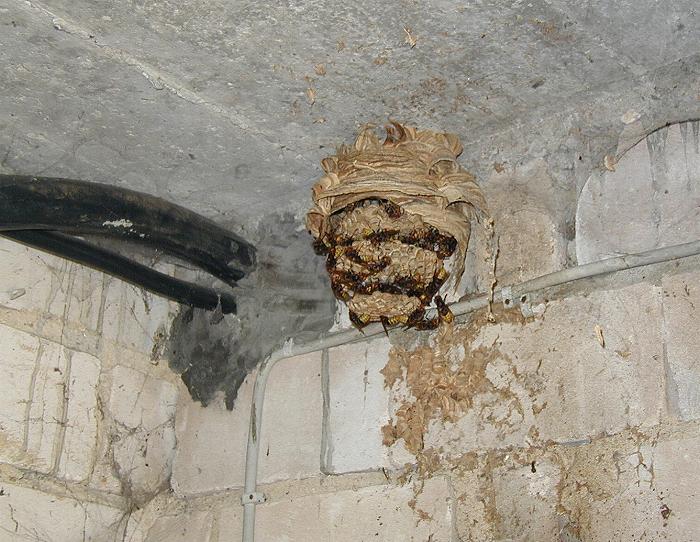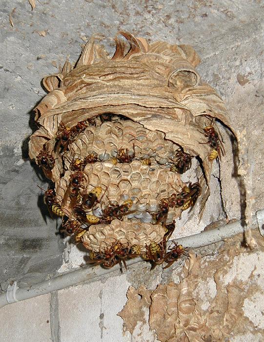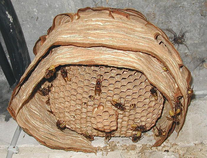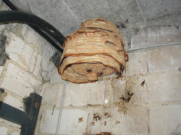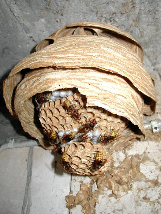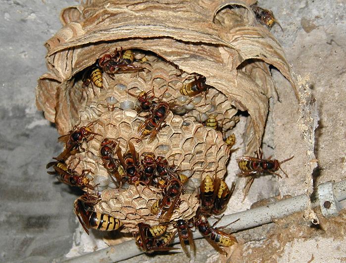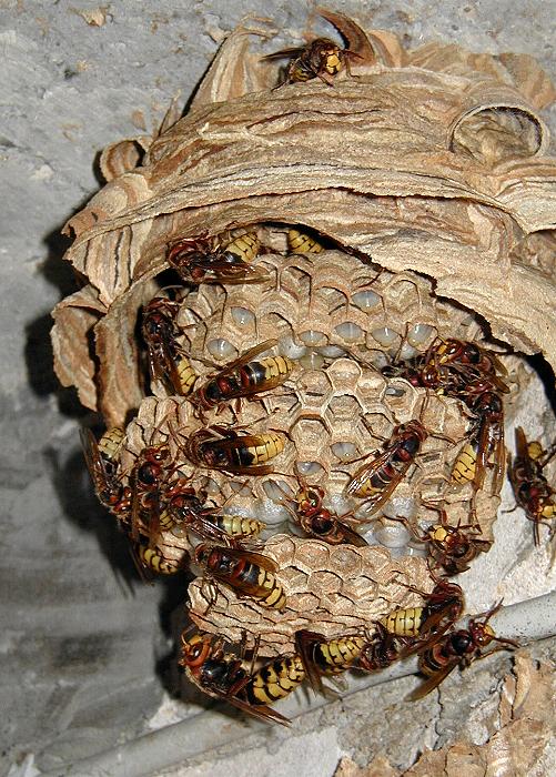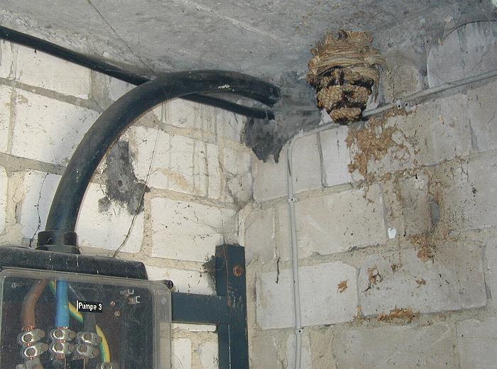 eines Stromverteilerhäuschen ein Hornissennest entstehen.