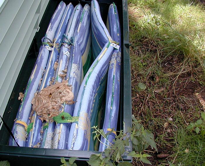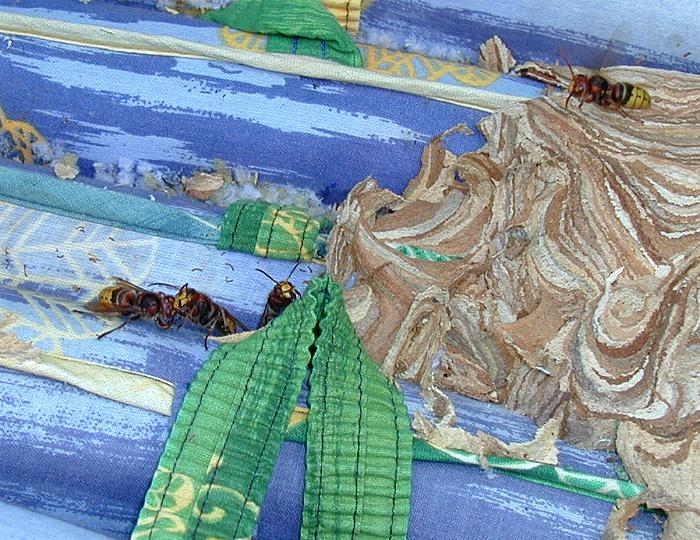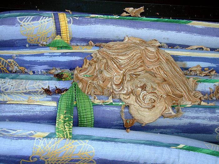 Polsterauflagen lagere, haben sich Wespen angesiedelt."