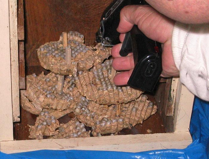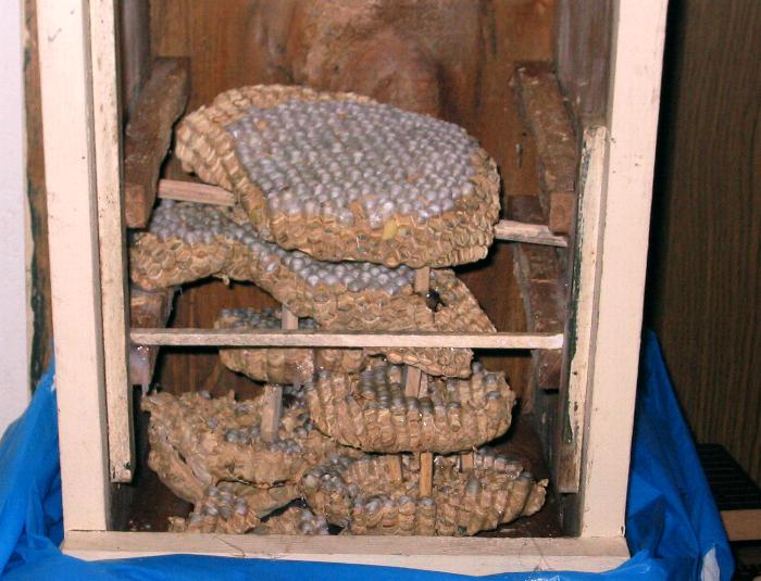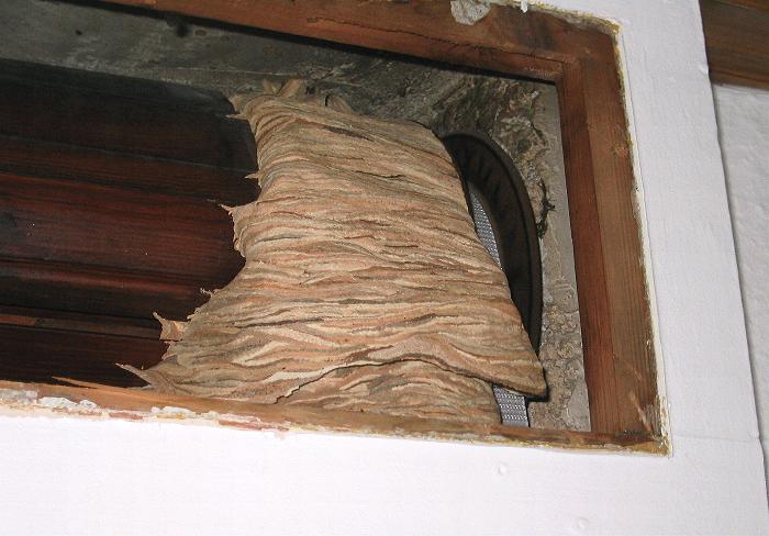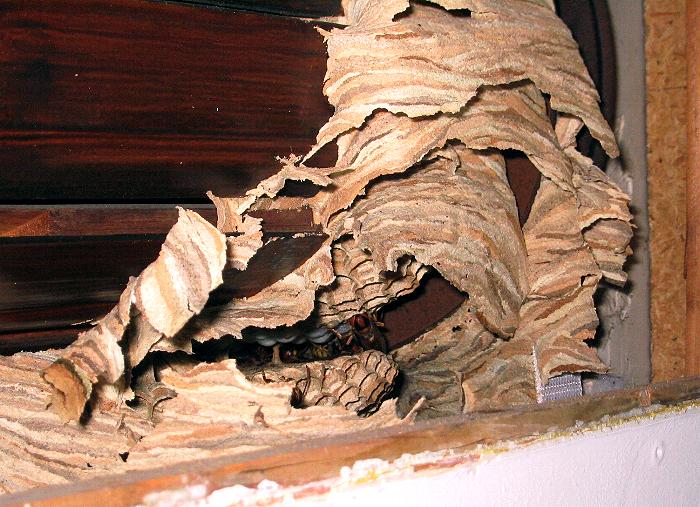 Hornissen abgedichtet und das Nest somit vor Zugluft geschützt.