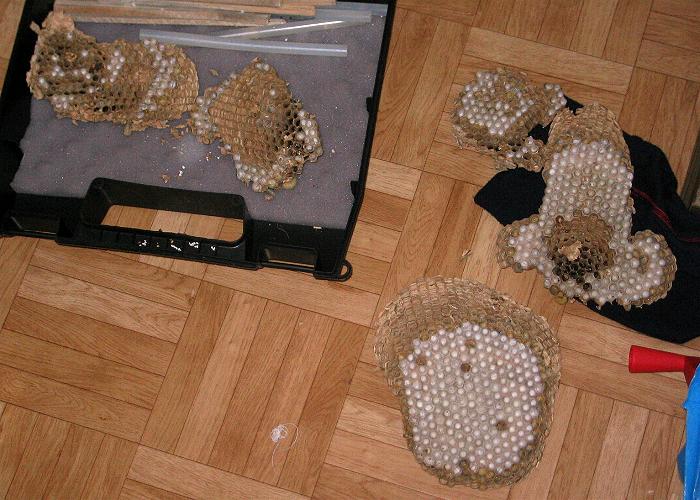 Abstandhaltern wieder zum Hornissennest zusammen gefügt. |