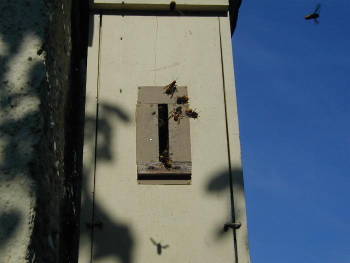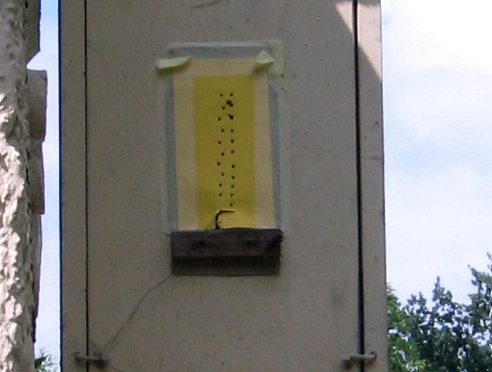 Die Hornissen haben sich mittlerweile ein großes Einflugloch geschaffen