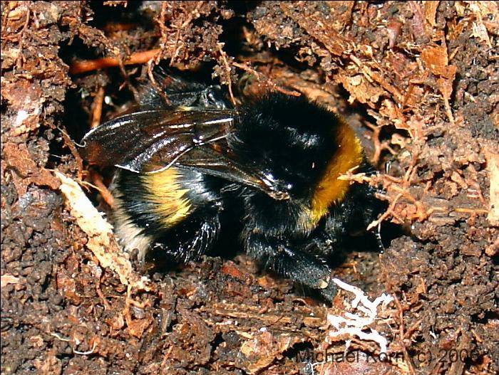 Königin einer Erdhummel (Bombus terrestris) in Winterruhe