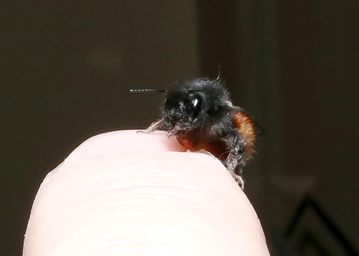 krabbelte heute ein Männchen der roten Mauerbiene.