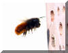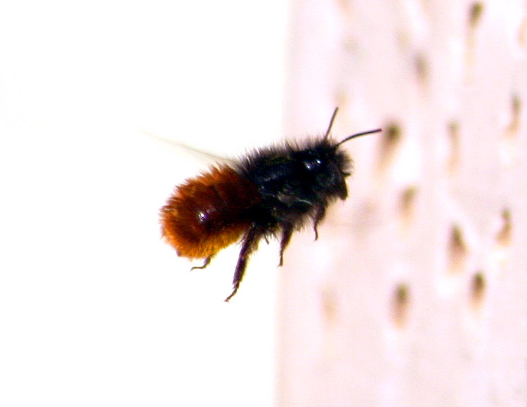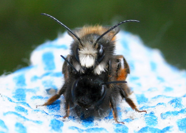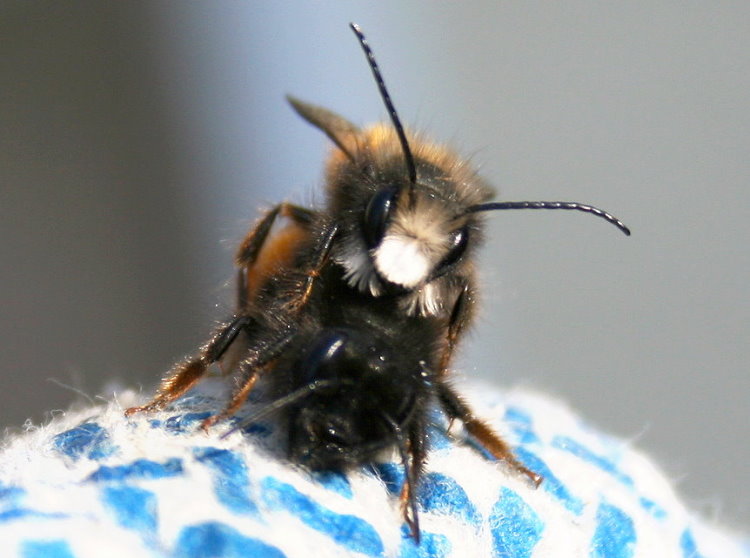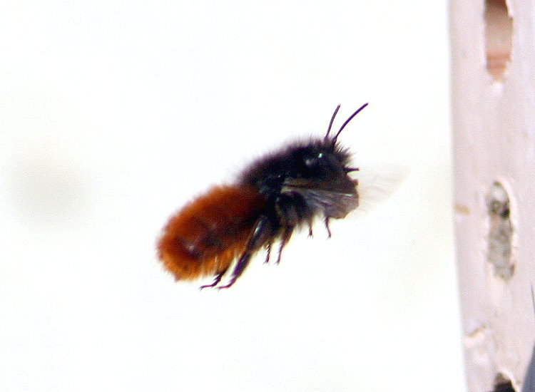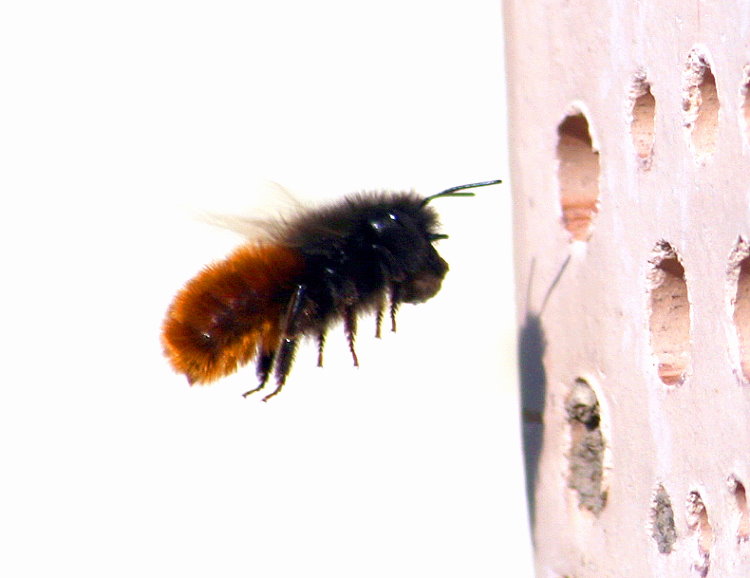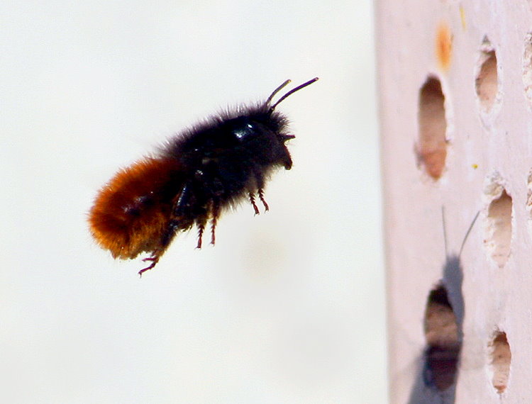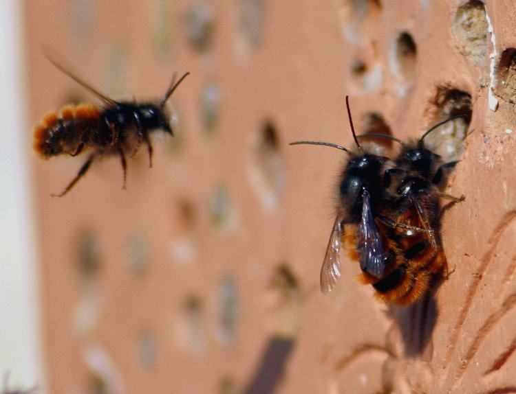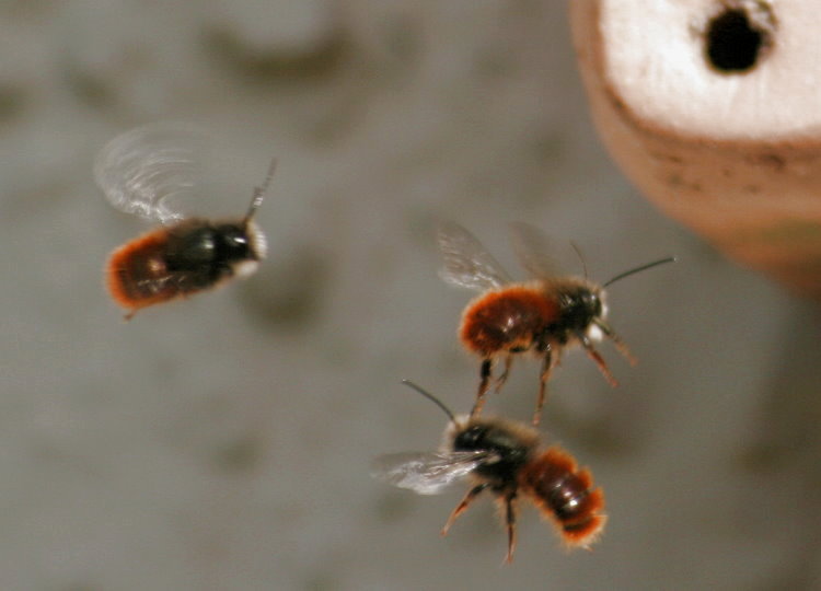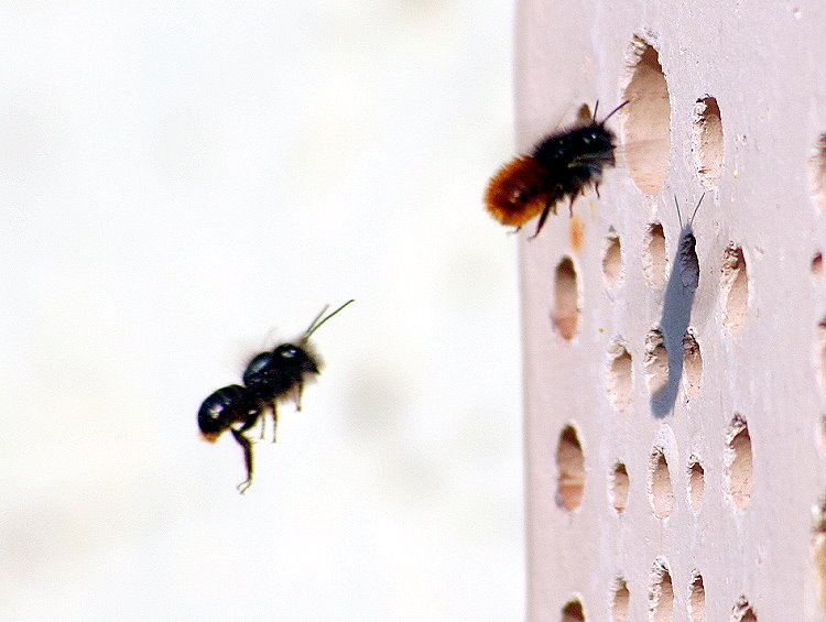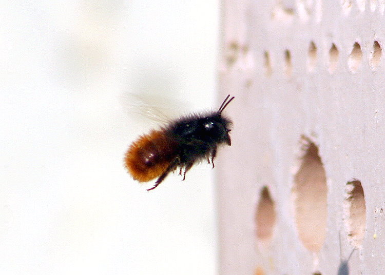 Männchen, die als erstes an der Wildbienennisthilfe zu